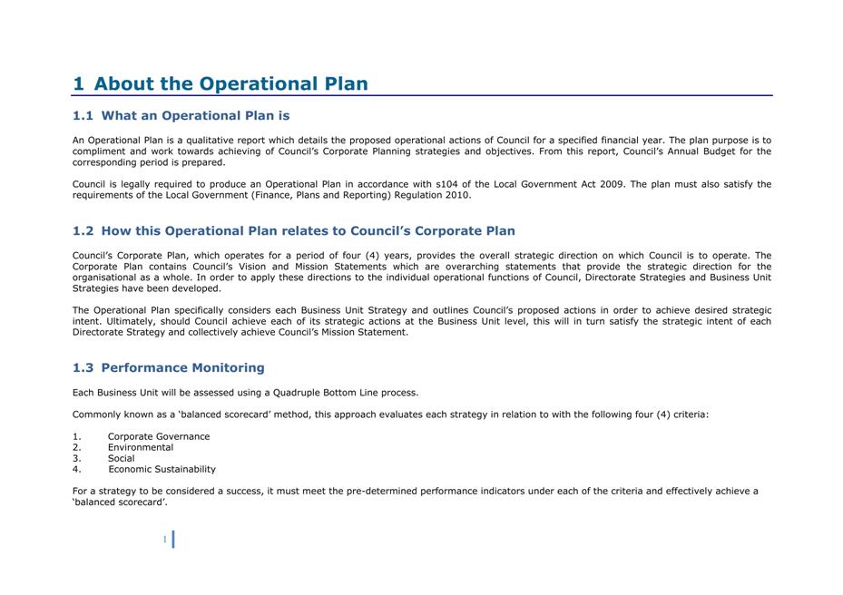 Executive Summary: The 2011/12 Operational Plan sets out the most significant projects and initiatives that Council decided to pursue this financial year towards achieving the long term objectives in the Corporate Plan 2009-2013.