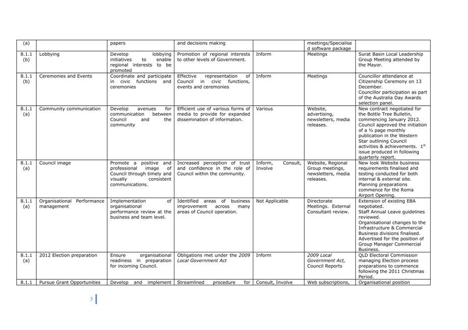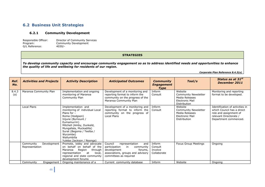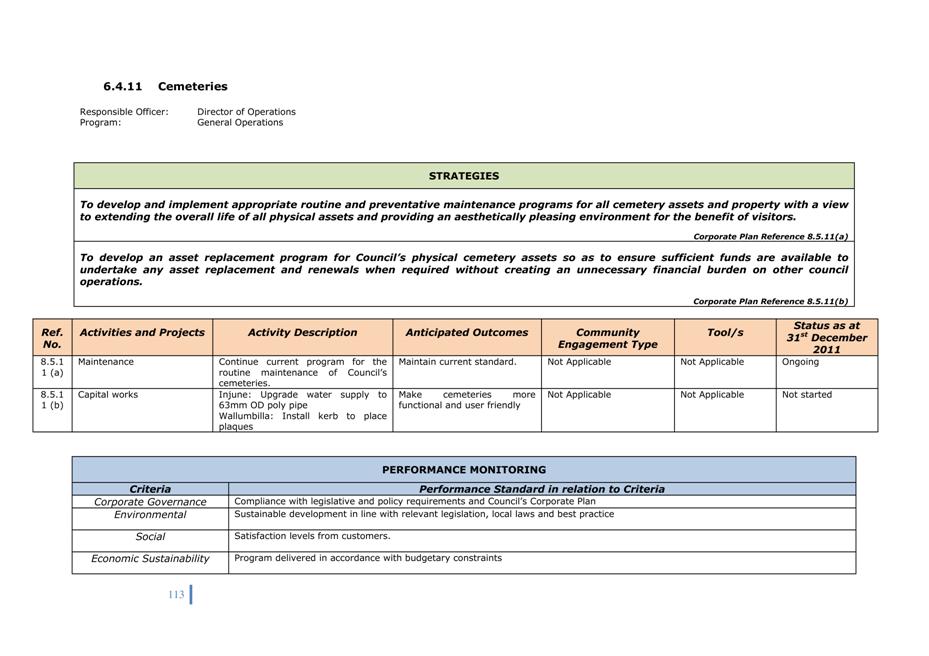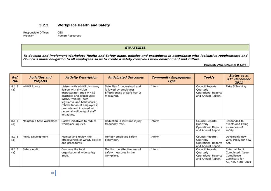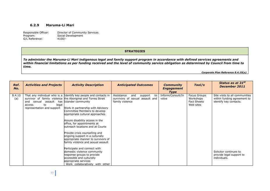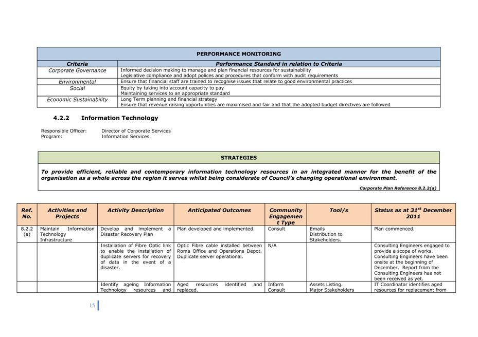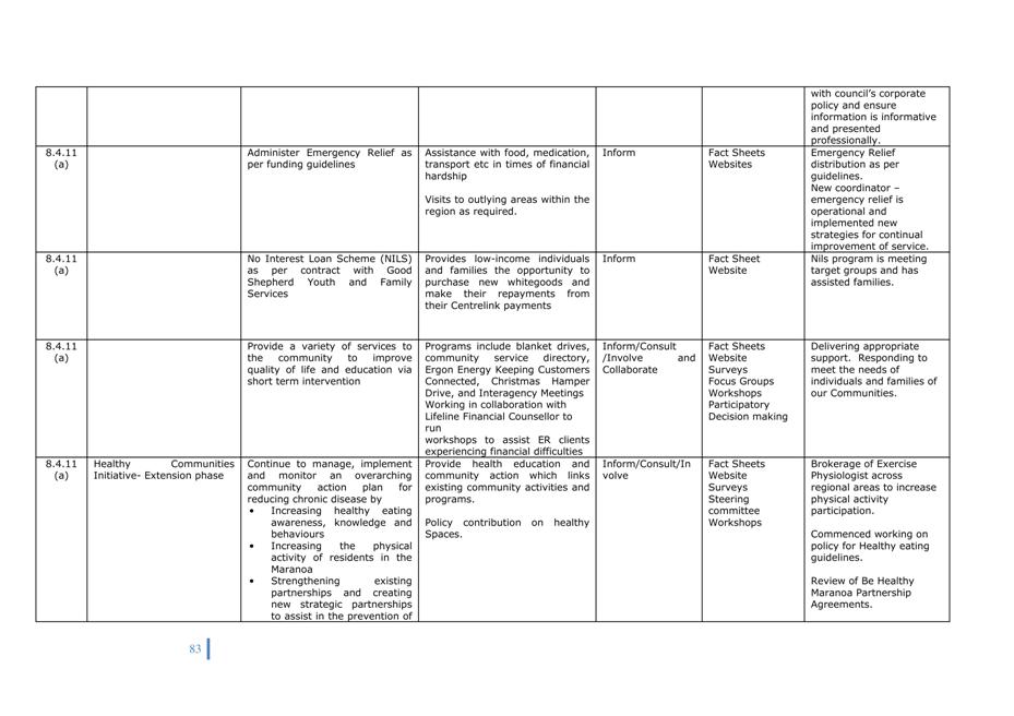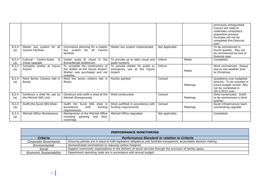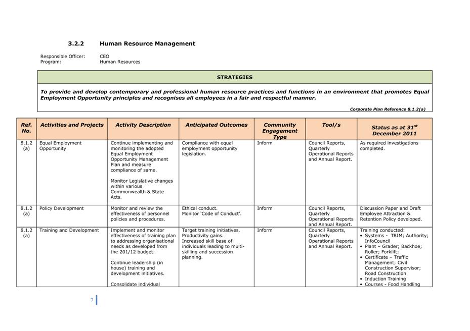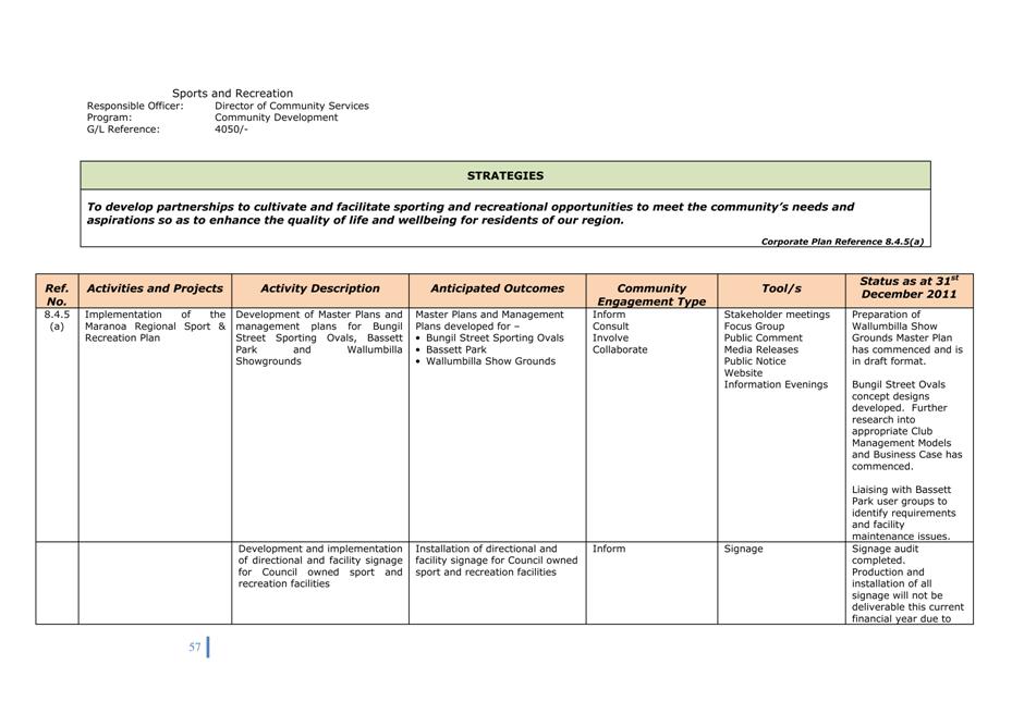 Corporate Plan 2009-2013 — 8.2.3(a) To implement Council’s governance policies and procedures in an evolving organisational environment whilst ensuring legislative relevance, consistency and fairness in application.