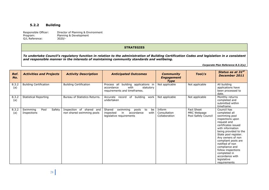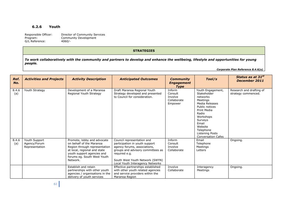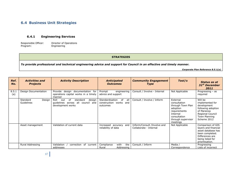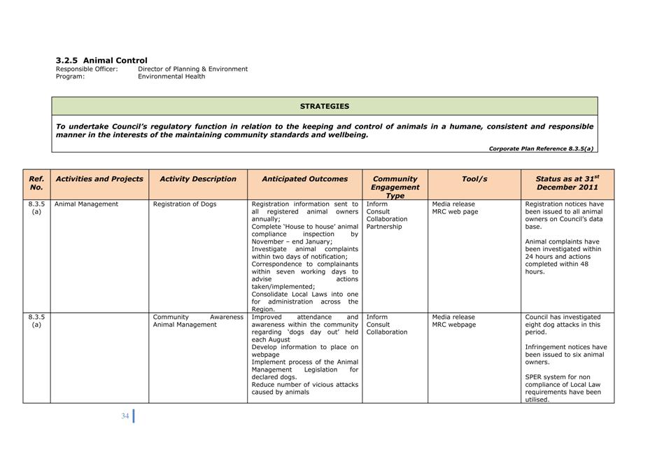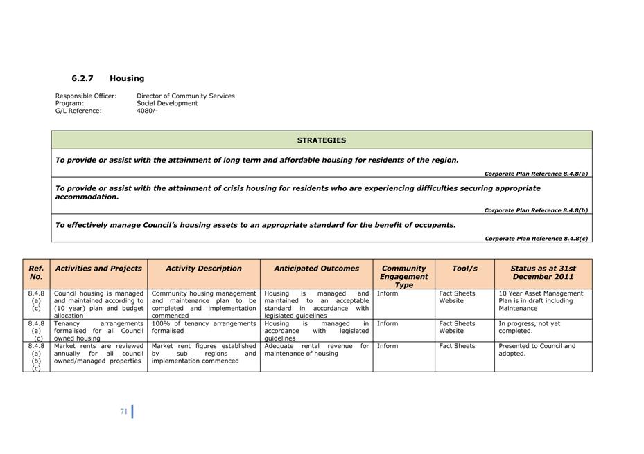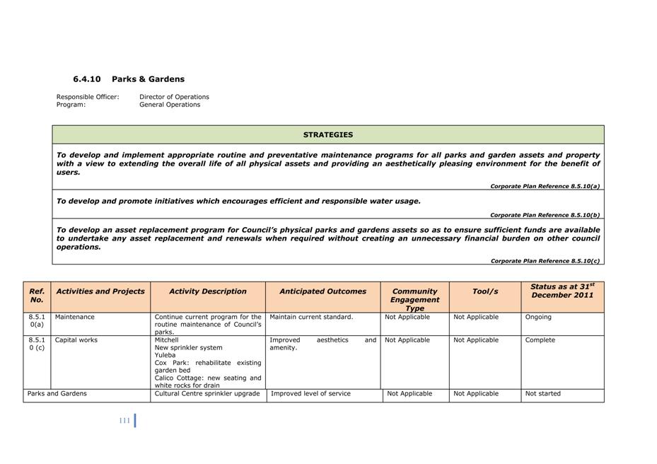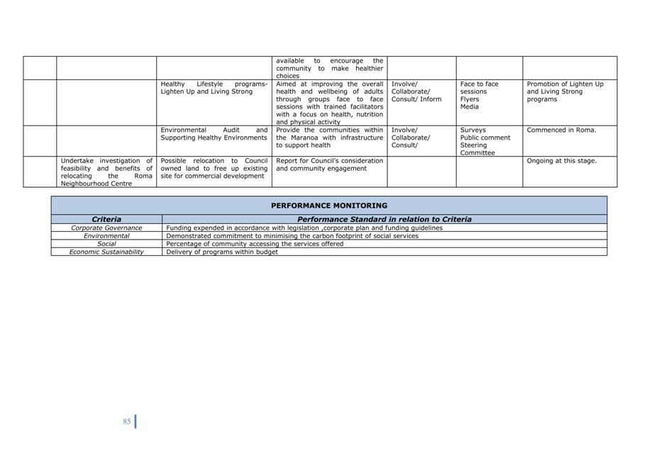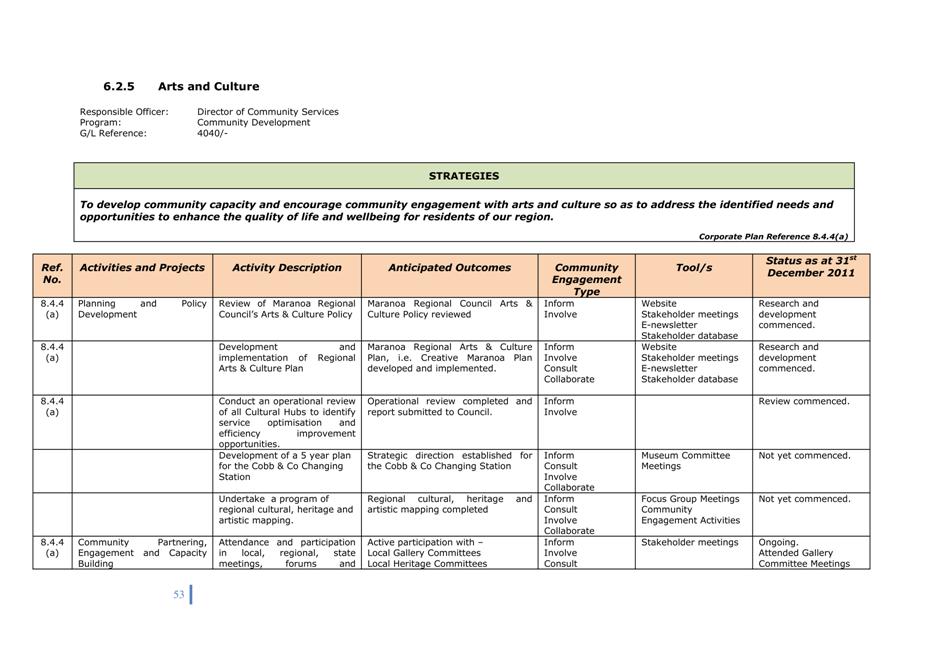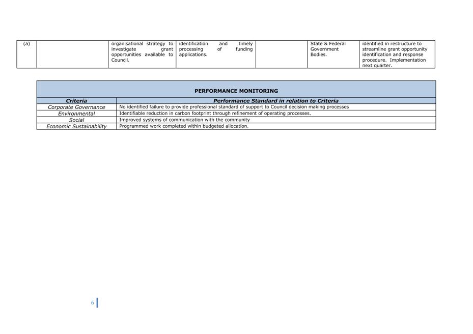 Corporate Plan 2009-2013 — 8.2.3(a) To implement Council’s governance policies and procedures in an evolving organisational environment whilst ensuring legislative relevance, consistency and fairness in application.