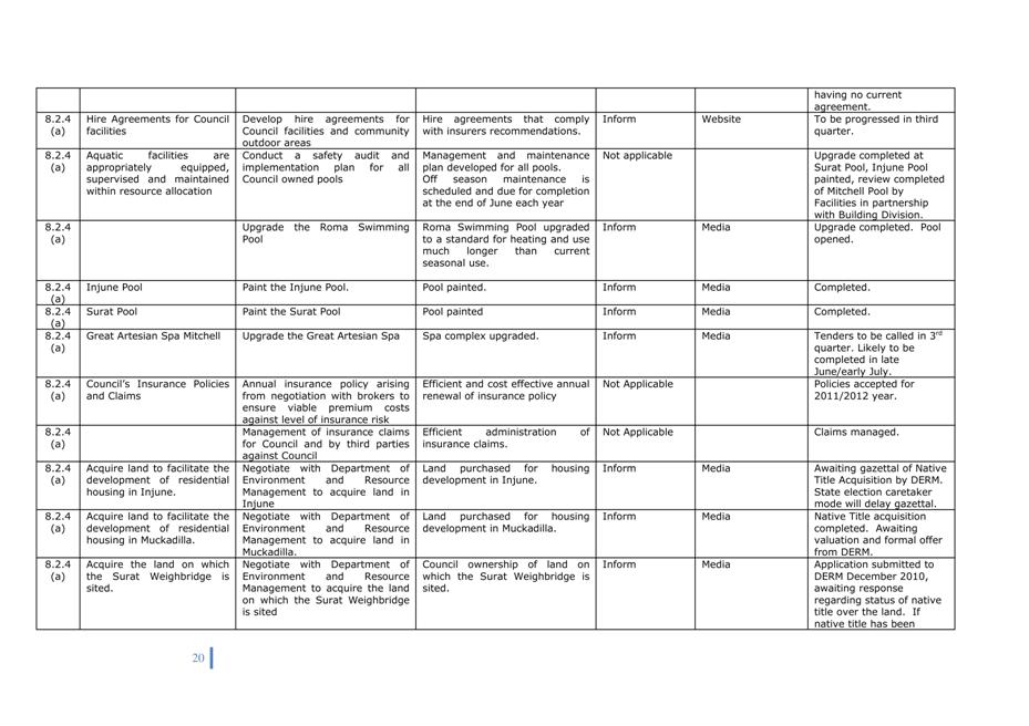 The attached report on progress to 31st March 2012 is presented for Council’s consideration. An update on activities identified in the Operational Plan has been undertaken and explanations provided. |