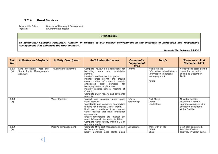 The 2011/12 Operational Plan review for the third quarter is presented for Council’s consideration. An update on activities identified in the Operational Plan to address the strategies outlined in the Corporate Plan has been undertaken and explanations provided where appropriate.