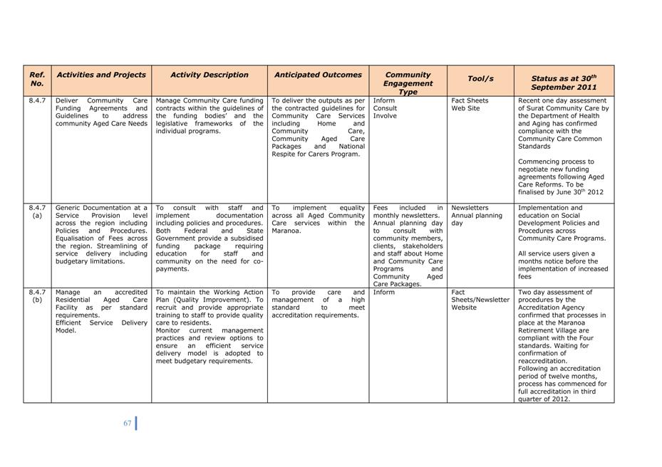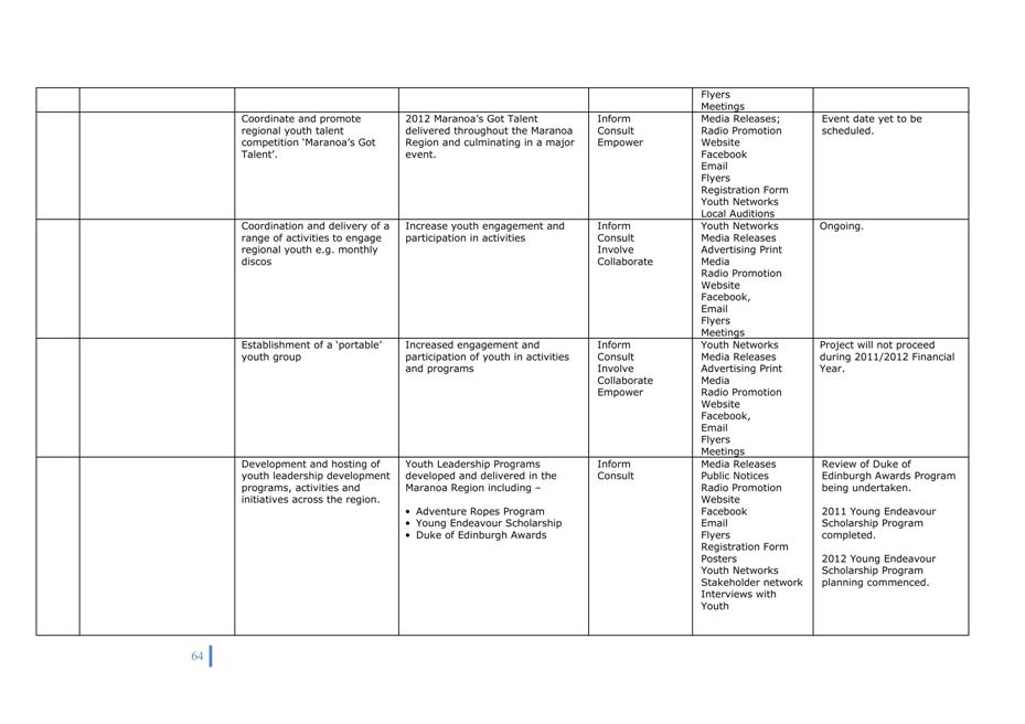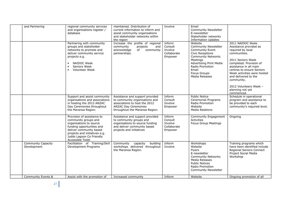 Activities have been included in Council’s budget 2011/12.