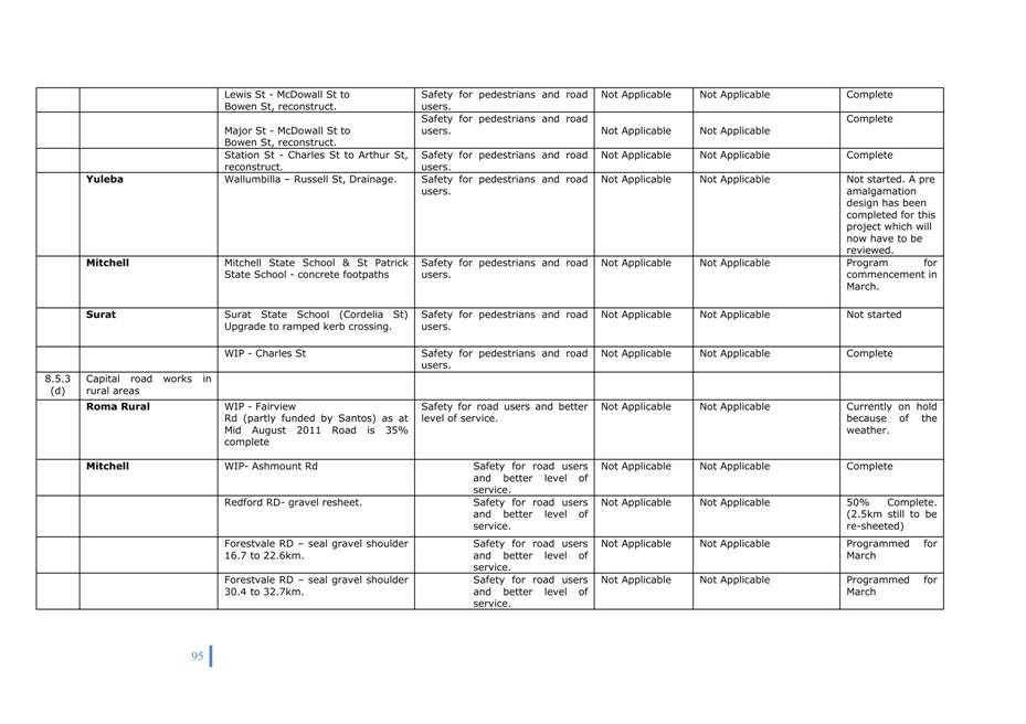 This program will be finalised following consideration of this Report.