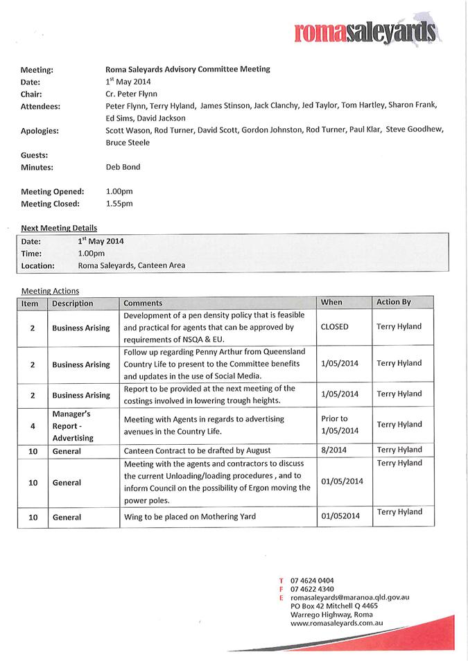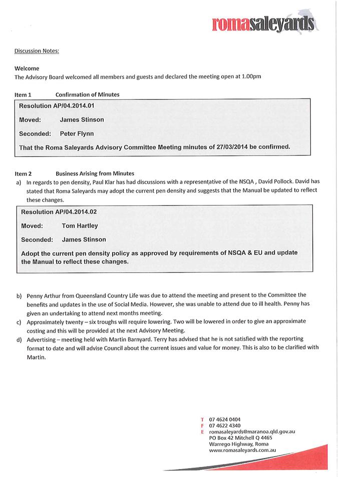 Attachment 1:    Confirmed Minutes - Roma Saleyards Advisory Committee - 01/05/14................................................................................... 19