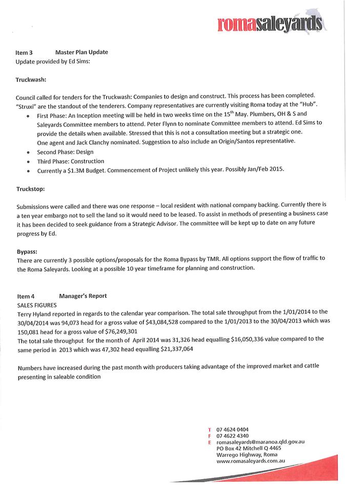 Please find attached agenda for the General Meeting to be held at the Roma Administration Centre on June 25, 2014 at 9.00am.