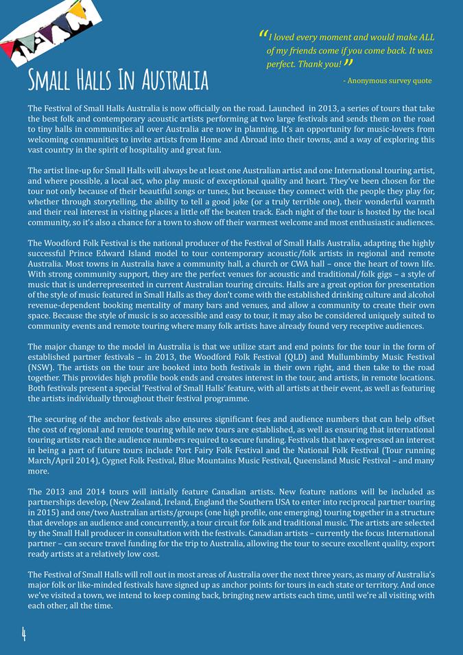 Attachment :      Festival of Small Halls Overview......................................... 53