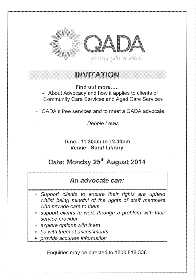 Venue:  Yuleba Memorial Hall                                             Time: 15.5.14 11am