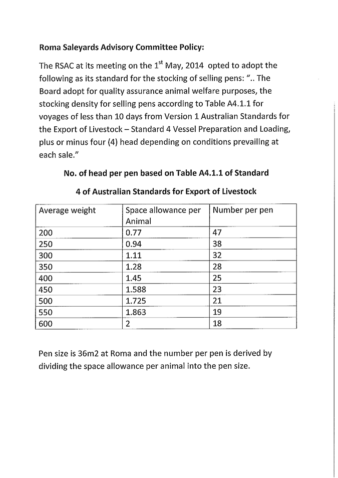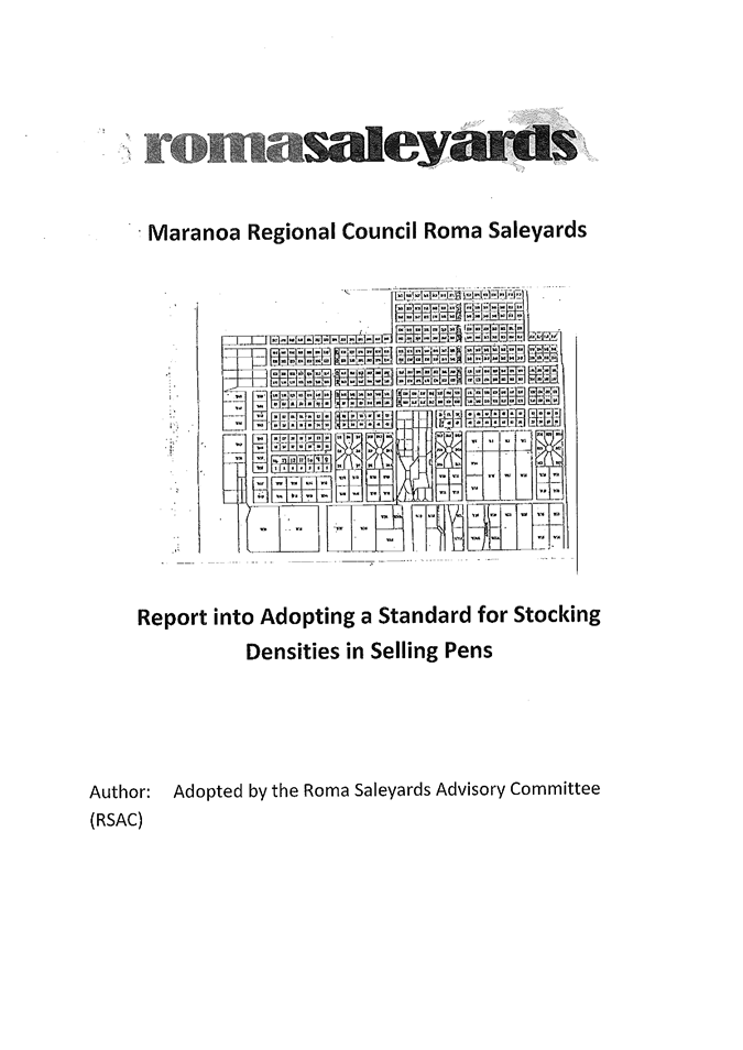 The report into adopting a standard for stocking densities in selling pens is attached for Council’s review.